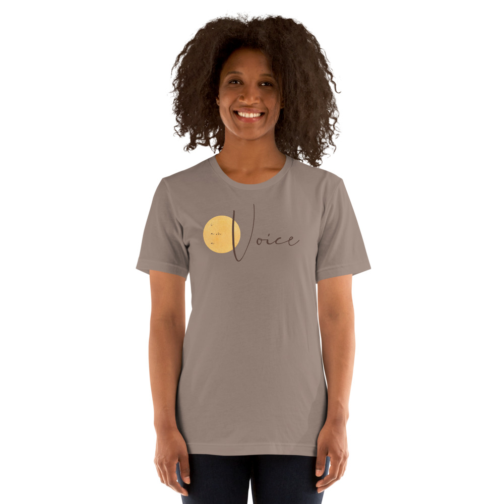 T-shirts are a dime a dozen, but YOU are not, and your VOICE is not. Wear this super soft, breathable tee with just the right amount of stretch to remind yourself--and everyone who sees you in it--that OUR VOICES MATTER.